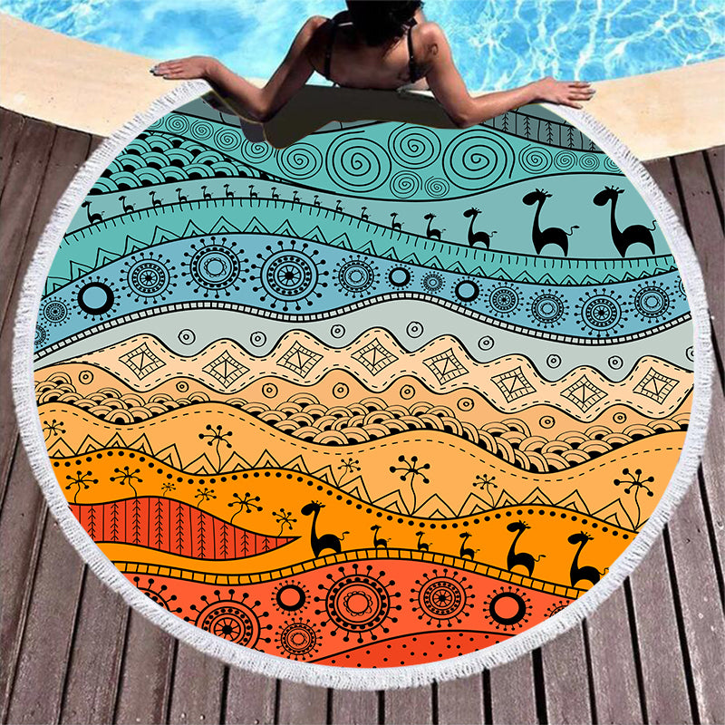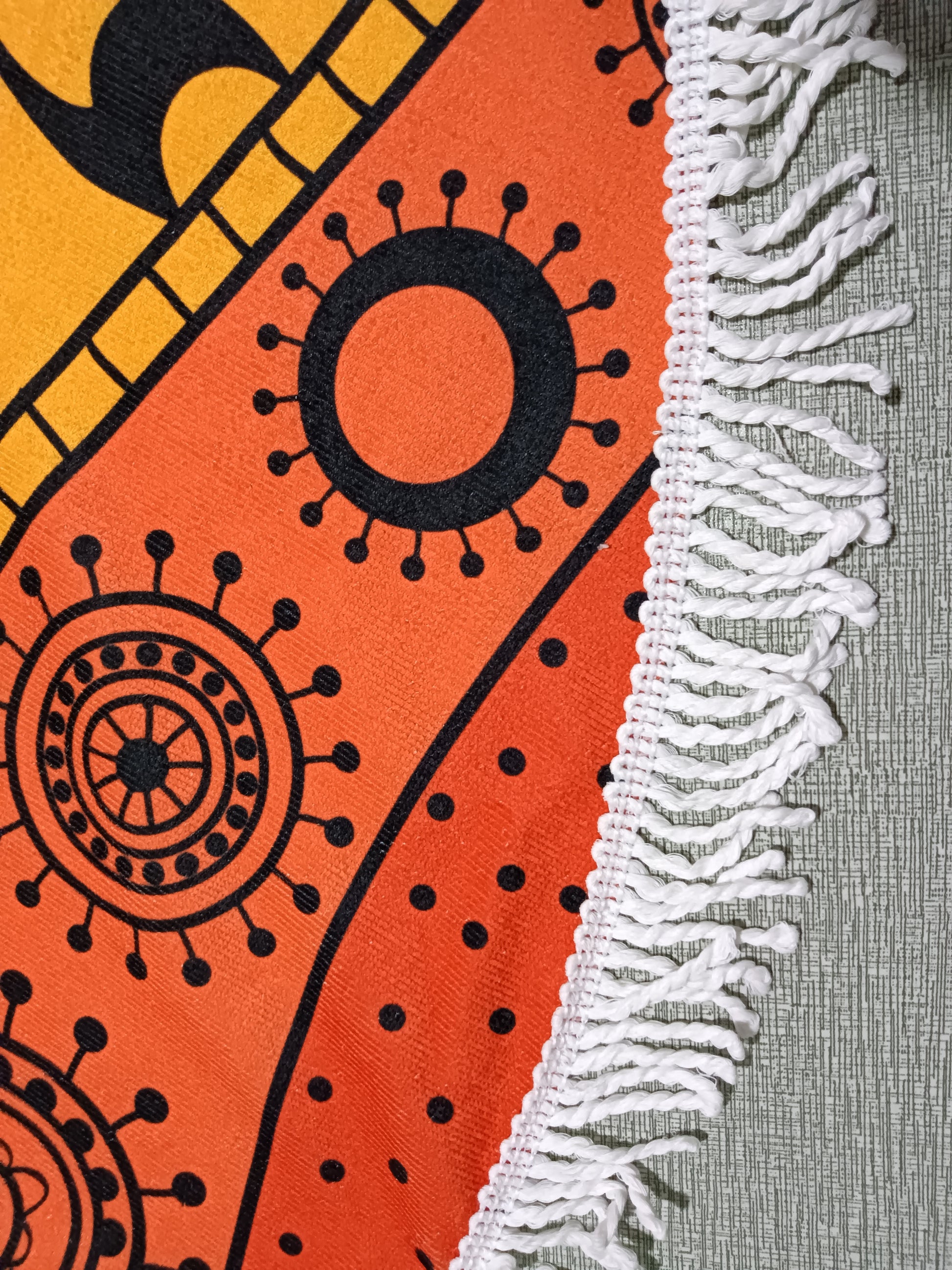 Relax in style with the Amellia circular beach towel. Featuring an elegant black-and-white mandala-inspired design, this towel blends bohemian charm with everyday practicality. Made from 100% microfiber polyester, it’s soft, lightweight, and absorbent—perfect for the beach, poolside, yoga, or picnics. Finished with delicate fringe trim, the Amellia towel is both versatile and eye-catching.