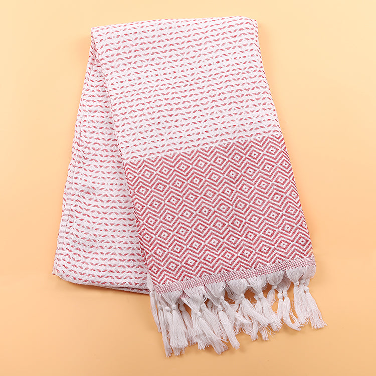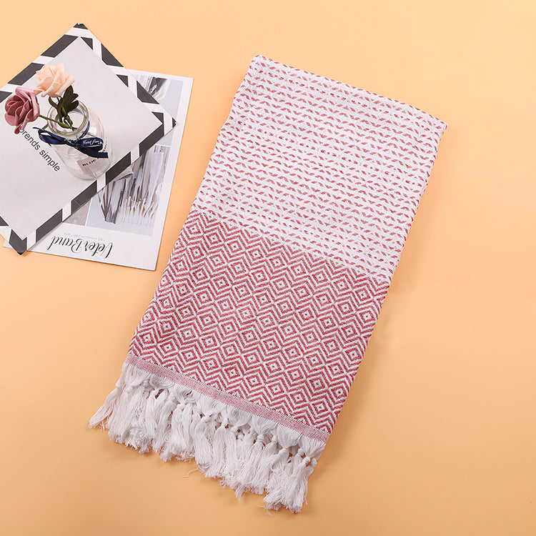 The Celeste Turkish Towel - a symphony of oceanic hues and unmatched softness. Immerse yourself in the soothing tones of the sea with this exquisite towel, reminiscent of tranquil blues and serene greens. Crafted from 100% organic cotton, its gentle touch offers a sensation of pure comfort, while its impressive dimensions of 100 x 180cm provide ample coverage.